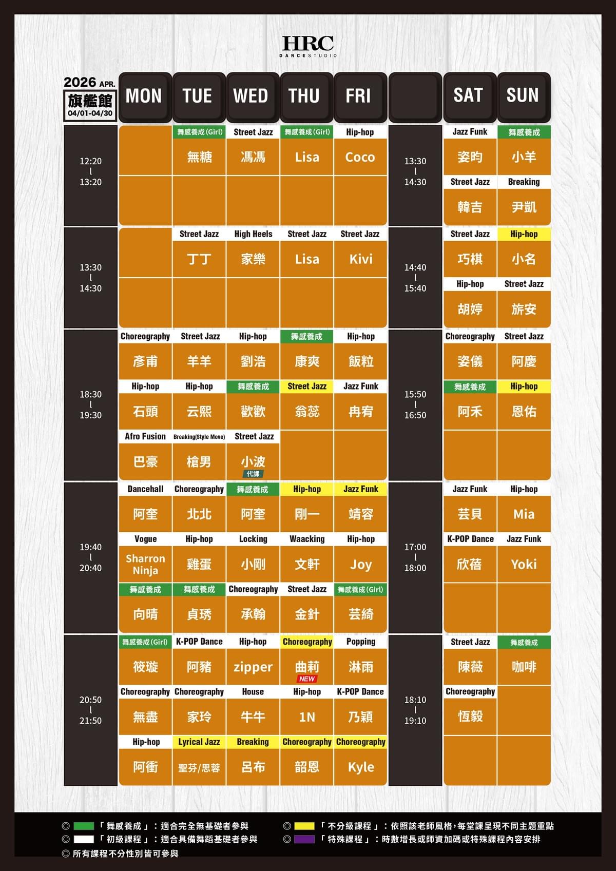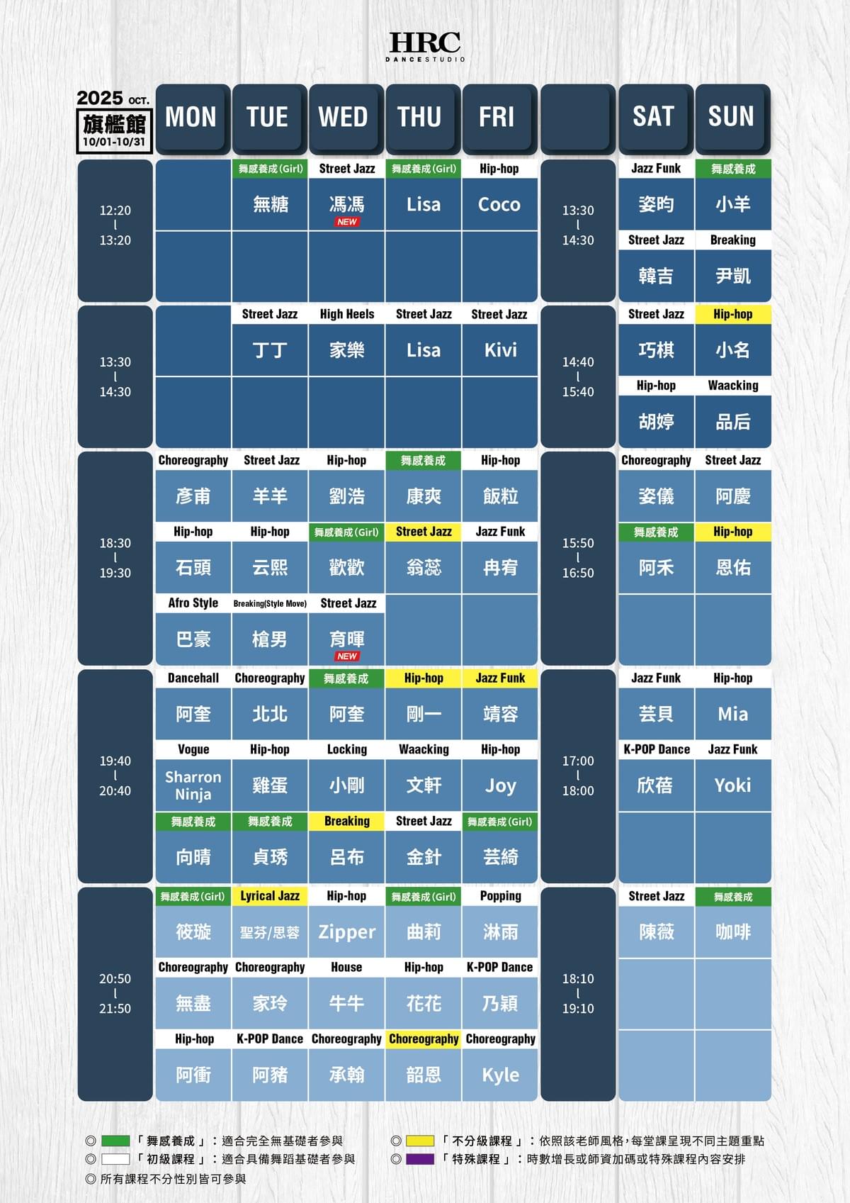 (各館代課公告請至17Fit 或 HRC APP 預約系統)
